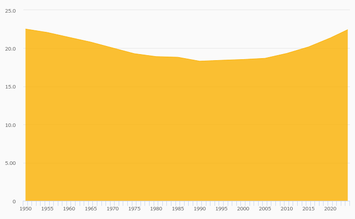 Median Age rose 1.22% to 22.4 years in Central African Republic in 2024
