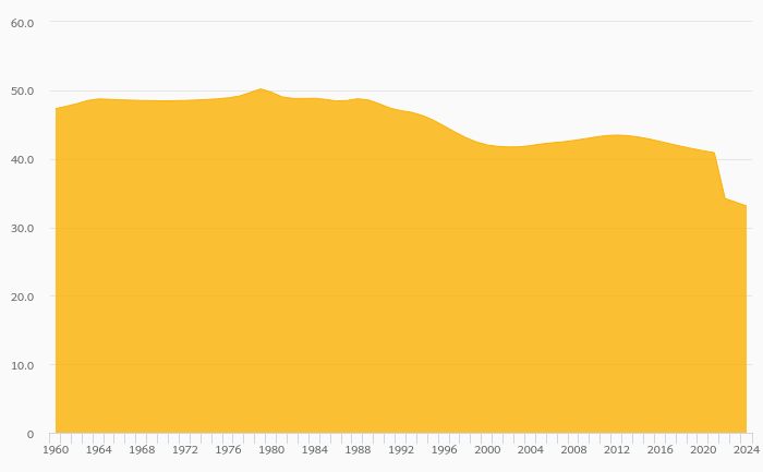 Population Aged 0-14 Years (As % of Total Population) fell 1.64% to 33.1% in Zimbabwe in 2024