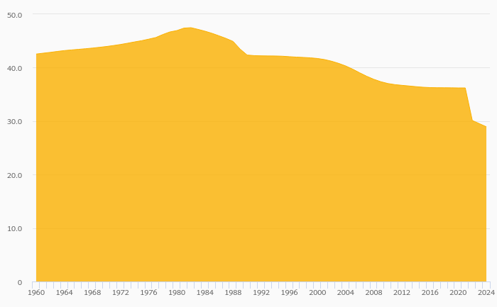 Population Aged 0-14 Years (As % of Total Population) fell 2.00% to 28.9% in Namibia in 2024