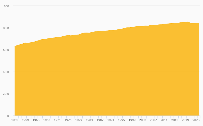Life Expectancy at Birth (Both Sexes) rose 0.205% to 84.3 years in Hong Kong in 2024