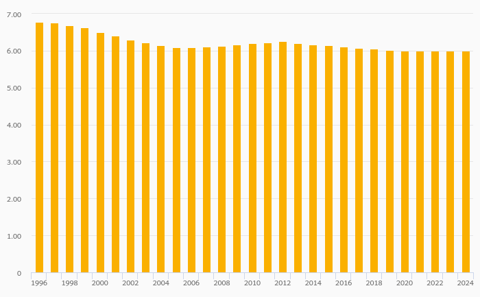 Persons Per Household rose 0% to 6.00 persons in Guinea in 2024