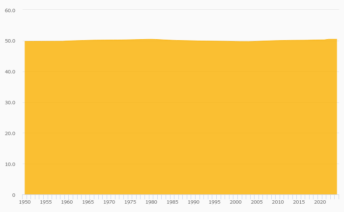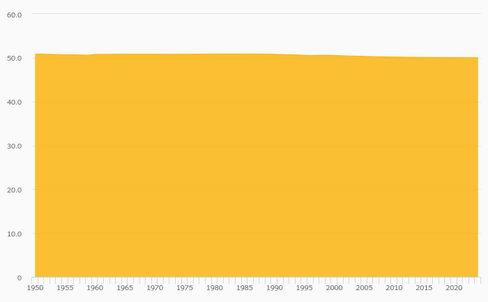 Female Population (As % of Total Population) rose 0.004% to 50.0% in Congo in 2024