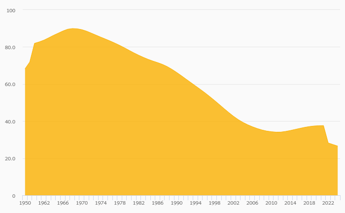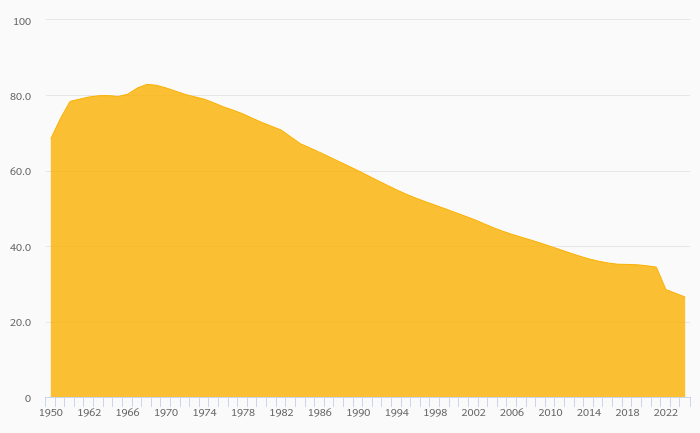 Youth Dependency Ratio fell 3.56% to 26.5% in Turkey in 2024