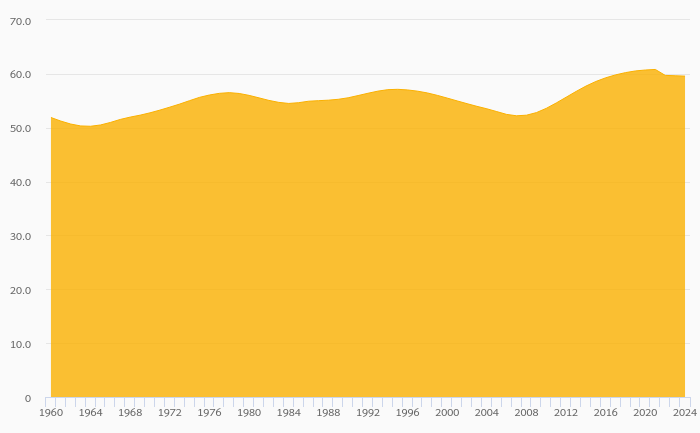 Total Dependency Ratio fell 0.112% to 59.6% in Sweden in 2024