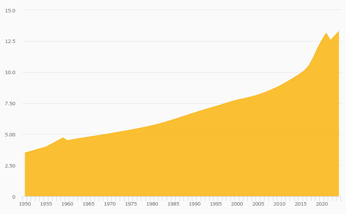 Old Age Dependency Ratio rose 2.81% to 13.3% in Venezuela in 2024