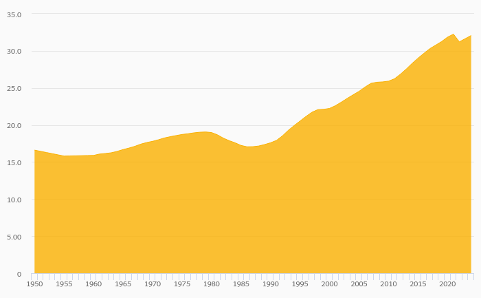 Old Age Dependency Ratio rose 1.35% to 32.1% in Estonia in 2024