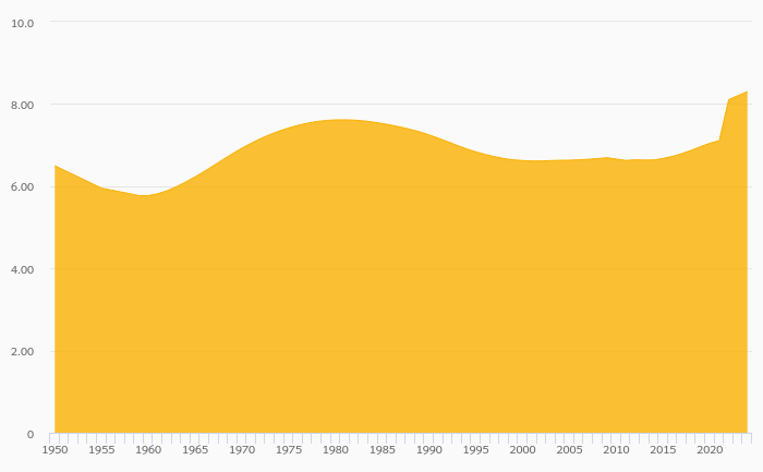 Old Age Dependency Ratio rose 1.18% to 8.30% in Haiti in 2024