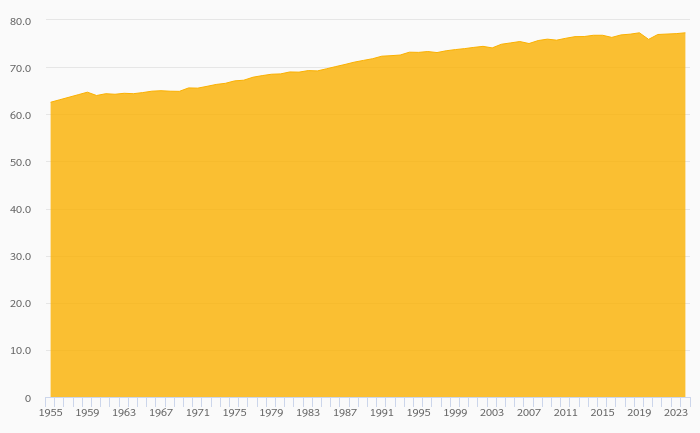 Life Expectancy at Birth (Both Sexes) rose 0.231% to 77.3 years in Argentina in 2024