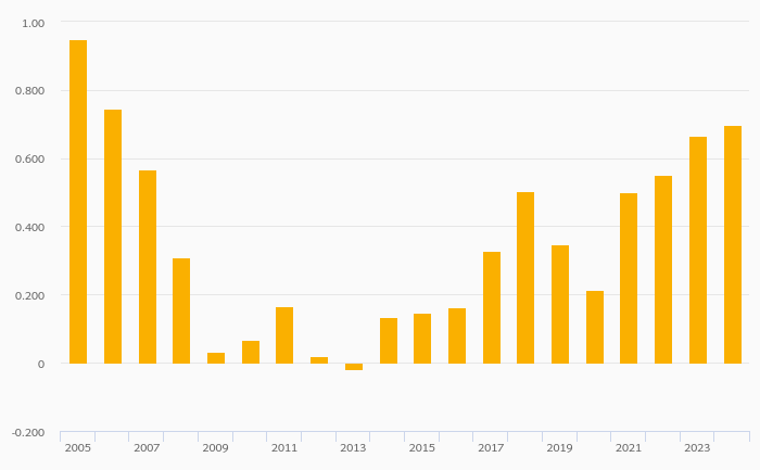 Bank Pre-Tax Return on Equity (Pre-Tax ROE) fell 0.254% to 25.1% in Kyrgyzstan in 2024