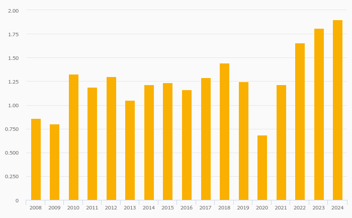 Bank Pre-Tax Return on Assets (Pre-Tax ROA) rose 17.4% to 1.42% in Italy in 2024