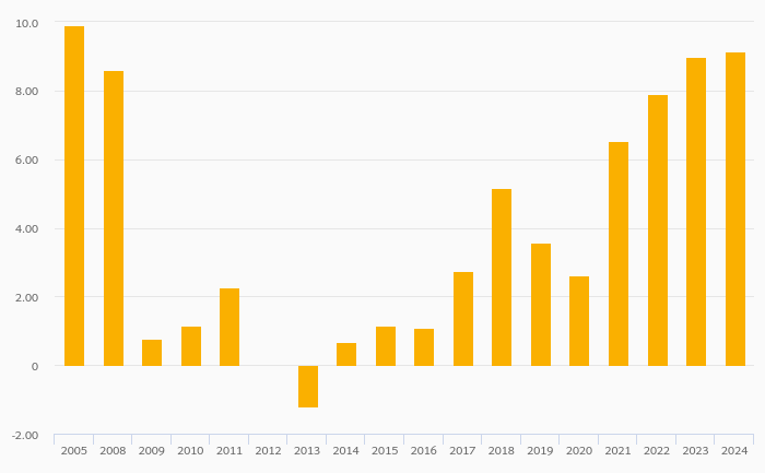 Bank Pre-Tax Return on Equity (Pre-Tax ROE) rose 1.57% to 9.13% in the United Kingdom in 2024
