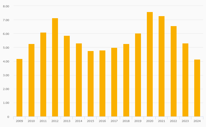 Non-Performing Loans (As % of Total Loans) fell 22.1% to 4.14% in United Arab Emirates in 2024