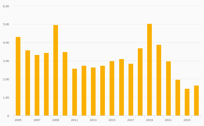 Non-Performing Loans (As % of Total Loans) rose 11.7% to 1.65% in Turkey in 2024