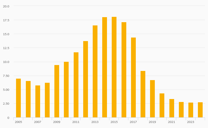 Non-Performing Loans (As % of Total Loans) rose 2.00% to 2.77% in Italy in 2024