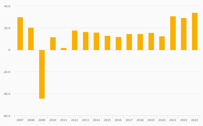 Bank Pre-Tax Return on Equity (Pre-Tax ROE) rose 16.2% to 33.8% in Zambia in 2023