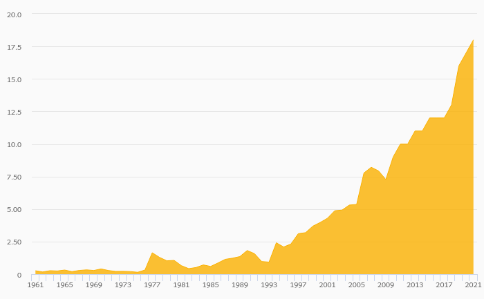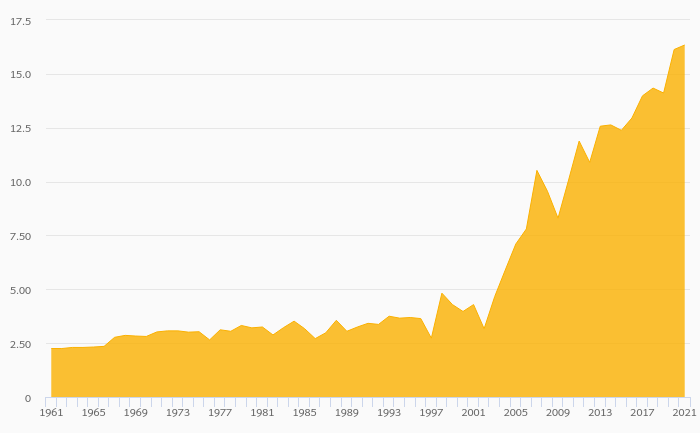 Onion Consumption Per Capita rose 1.30% to 16.3 kg in India in 2021
