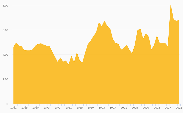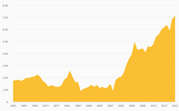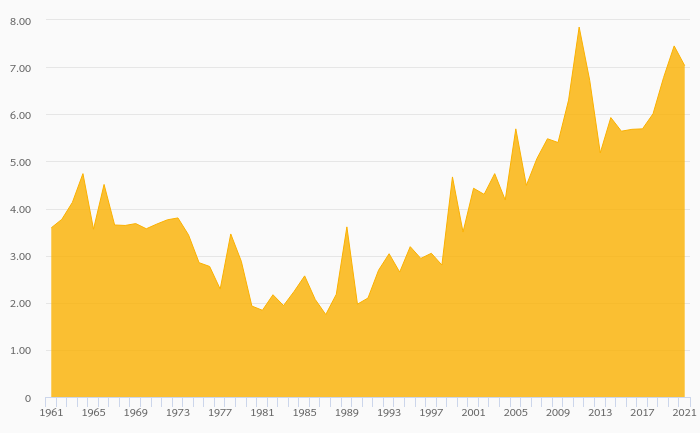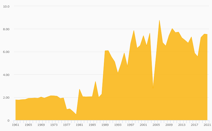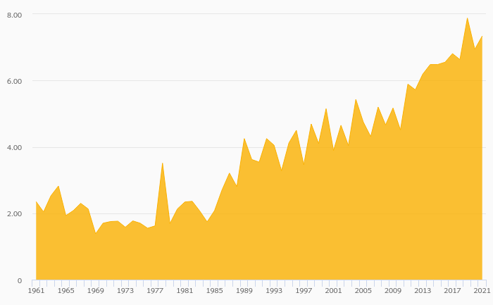 Onion Consumption Per Capita rose 5.76% to 7.34 kg in Finland in 2021