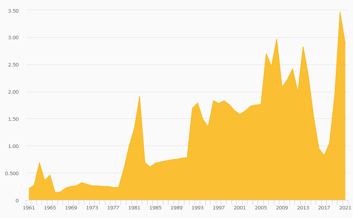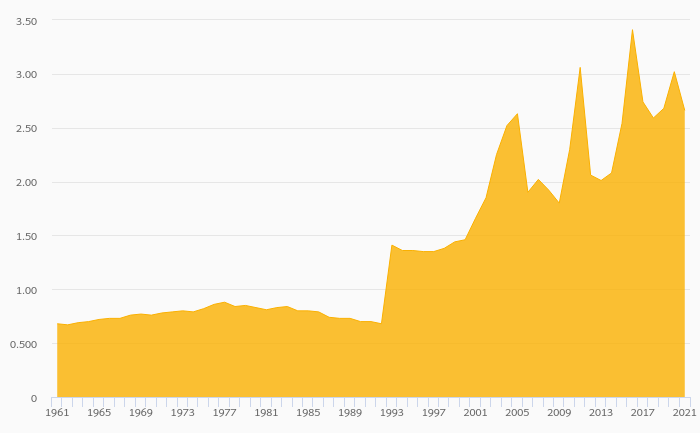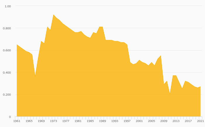 Coconut Consumption Per Capita rose 3.85% to 0.270 kg in Ecuador in 2021