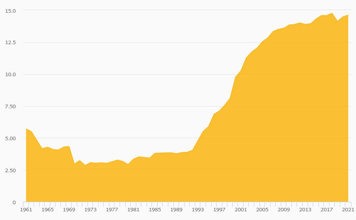 Onion Consumption Per Capita rose 0.897% to 14.6 kg in China in 2021