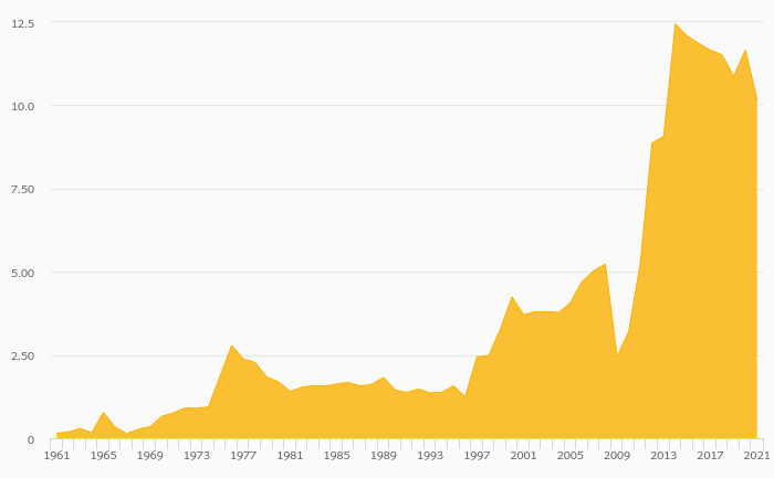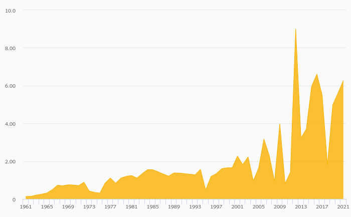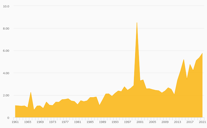 Onion Consumption Per Capita rose 11.8% to 6.27 kg in Benin in 2021