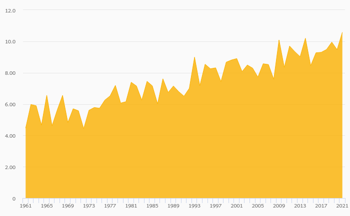 Onion Consumption Per Capita rose 11.7% to 10.6 kg in Canada in 2021