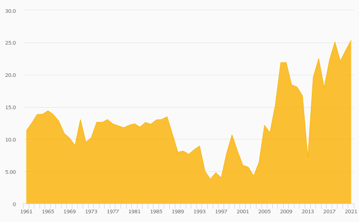 Onion Consumption Per Capita rose 6.55% to 25.4 kg in Egypt in 2021