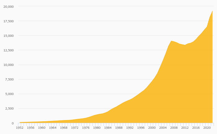 Total Household Liabilities (Local Currency) rose 5.89% to USD 19,192 bil in the USA in 2022
