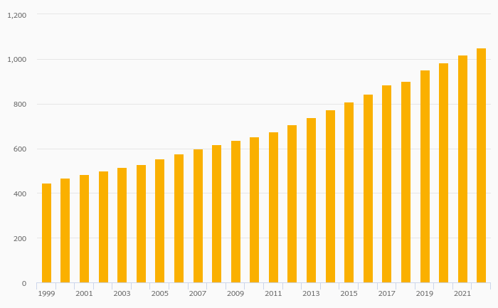 Households' Pension Fund Assets (Local Currency) rose 3.13% to CHF 1,052 bil in Switzerland in 2022