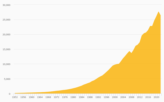 Households' Pension Fund Assets (Local Currency) fell 4.89% to USD 26,296 bil in the USA in 2022