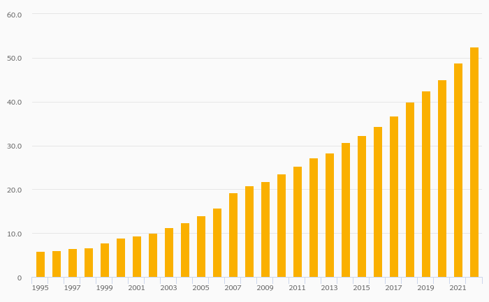 Total Household Liabilities (Local Currency) rose 7.54% to EUR 52.5 bil in Luxembourg in 2022
