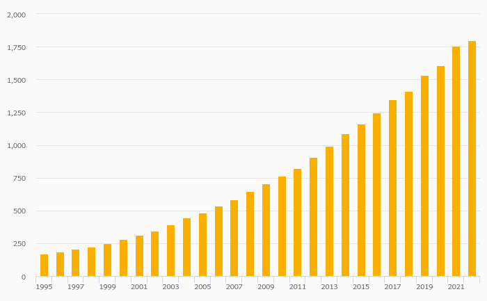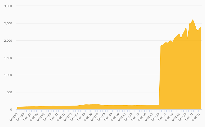 Households' Pension Fund Assets (Local Currency) rose 2.44% to NOK 1,800 bil in Norway in 2022