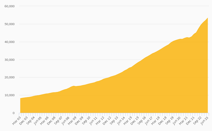 Households' Assets In Life Insurance Reserves (Local Currency) rose 12.7% yoy to CLP 53,388 bil in Chile in 2Q2023