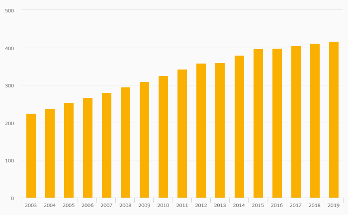 Passenger Cars Per 1,000 People rose 1.47% to 417 vehicles in Malaysia in 2019