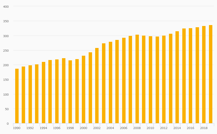 Passenger Cars Per 1,000 People rose 1.10% to 337 vehicles in Hungary in 2019