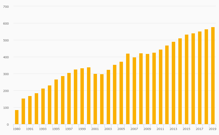 Passenger Cars Per 1,000 People rose 2.20% to 577 vehicles in Estonia in 2019