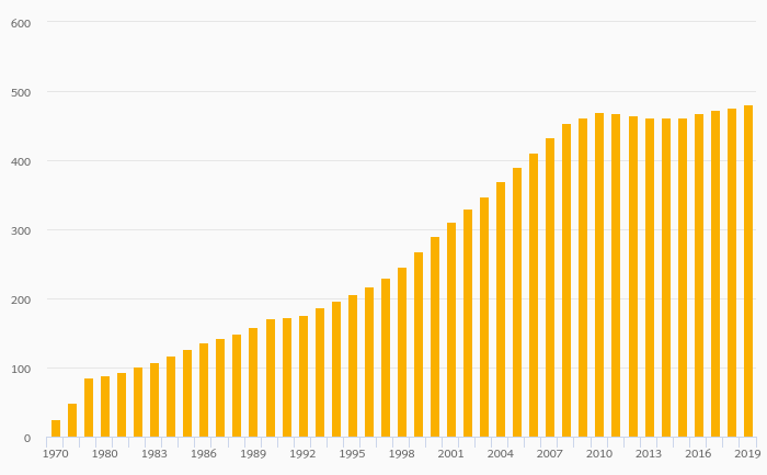 Passenger Cars Per 1,000 People rose 0.882% to 481 vehicles in Greece in 2019