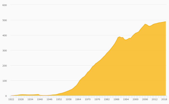 Passenger Cars Per 1,000 People rose 0.898% to 501 vehicles in Japan in 2019