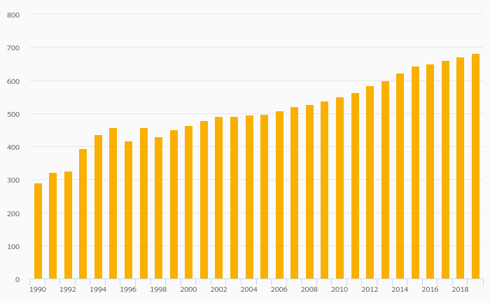 Passenger Cars Per 1,000 People rose 1.57% to 680 vehicles in Malta in 2019