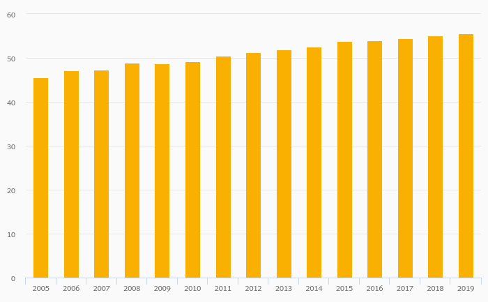 Passenger Cars Per 1,000 People rose 0.926% to 55.5 vehicles in Jamaica in 2019