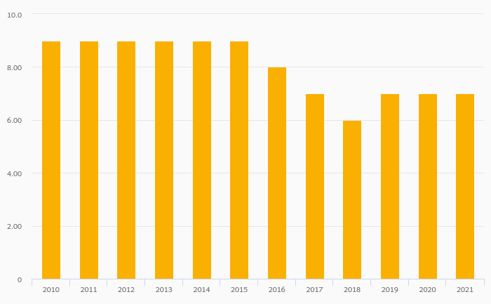 Alcoholic Beverage Consumption Per Capita (Distilled) rose 26.2% to 7.47 litres in Philippines in 2021