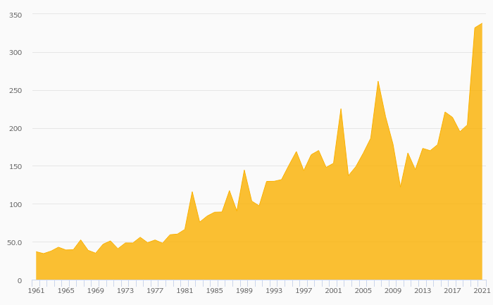 Bean Consumption (Total) rose 1.81% to 338 kt in Pakistan in 2021