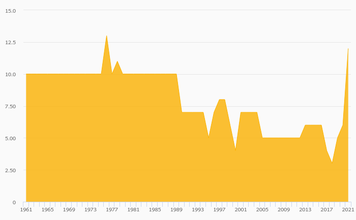 Egg Consumption Per Capita rose 5.79% to 16.8 kg in Albania in 2021