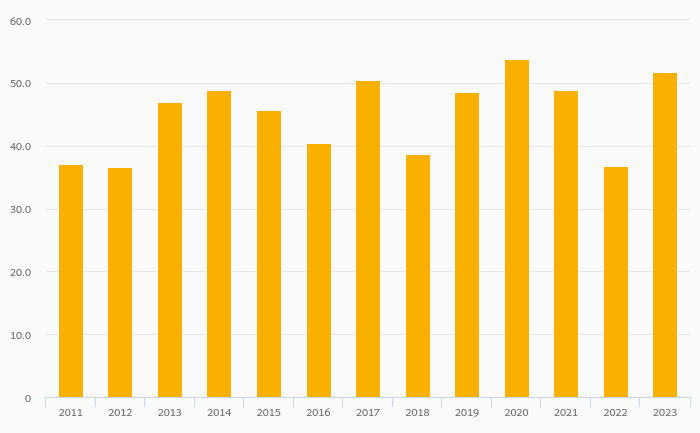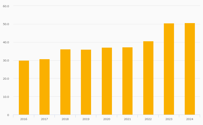 Bank Liquid Assets (As % of Short-Term Liabilities) rose 0.274% to 50.6% in Ireland in 2024