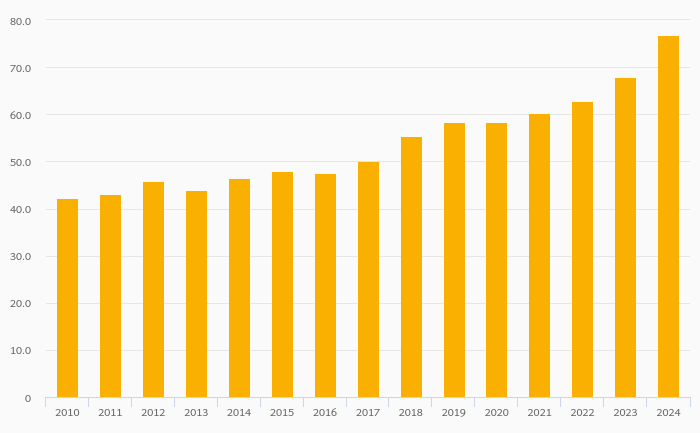 Bank Liquid Assets (As % of Short-Term Liabilities) rose 13.1% to 76.7% in China in 2024