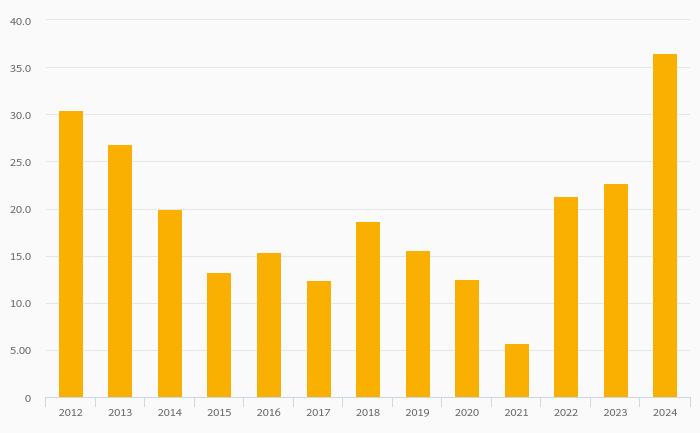 Bank Pre-Tax Return on Equity (Pre-Tax ROE) rose 60.7% to 36.5% in Botswana in 2024