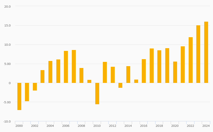 Bank Pre-Tax Return on Equity (Pre-Tax ROE) rose 6.48% to 16.0% in Bosnia and Herzegovina in 2024