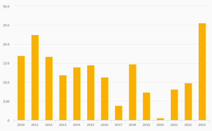 Bank Pre-Tax Return on Equity (Pre-Tax ROE) rose 160% to 25.5% in Bhutan in 2023