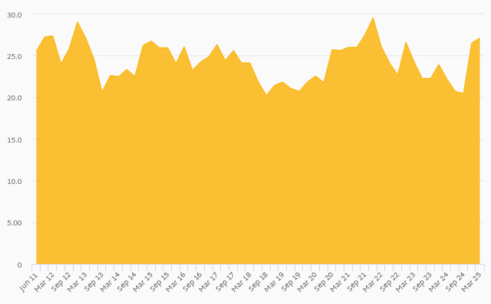 Bank Liquid Assets (As % of Short-Term Liabilities) rose 22.2% yoy to 27.1% in Indonesia in 1Q2025