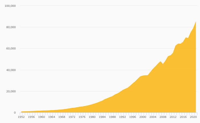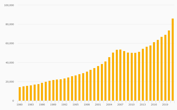 Households' Dwellings Assets Per Capita (USD) rose 17.0% to USD 86,266 in the USA in 2021