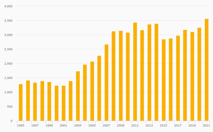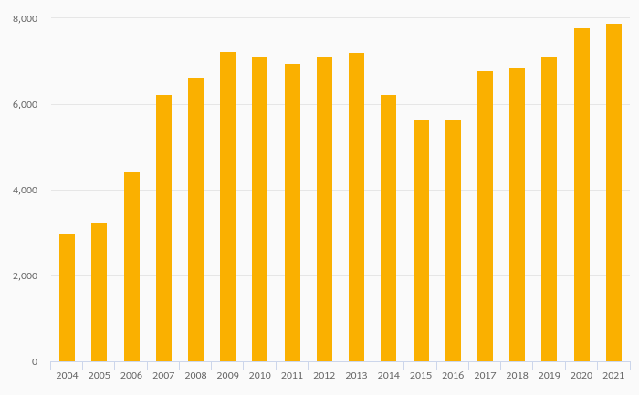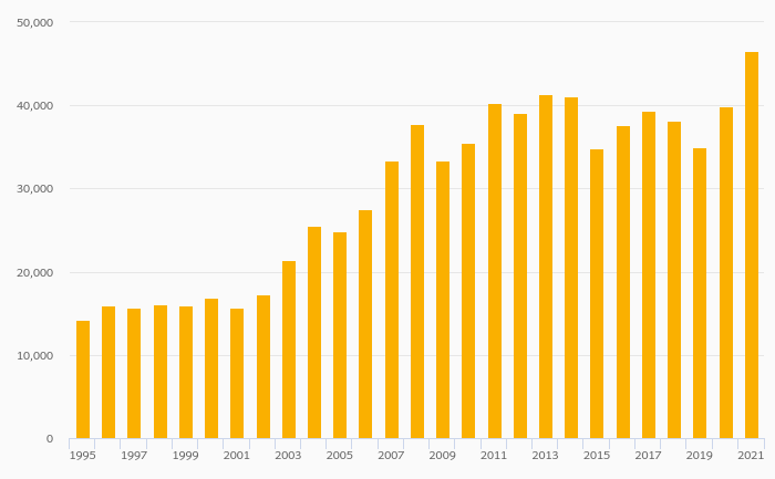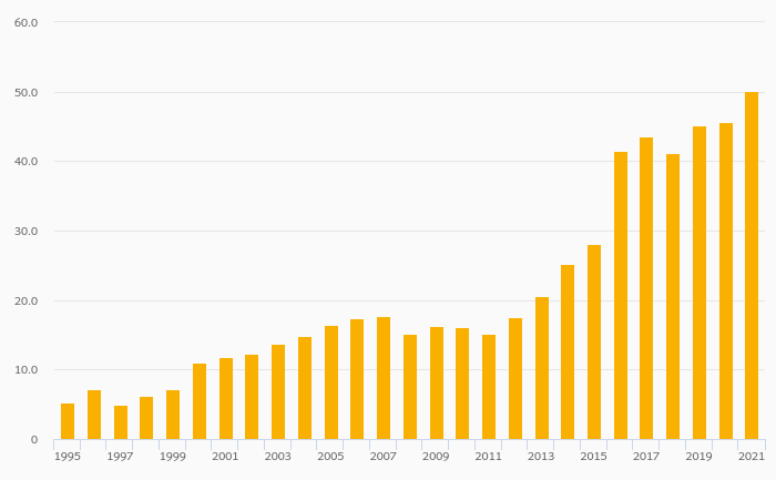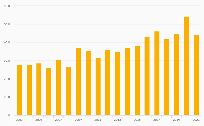 Households' Assets In Life Insurance Reserves (Local Currency) rose 9.80% to EUR 50.2 bil in Finland in 2021